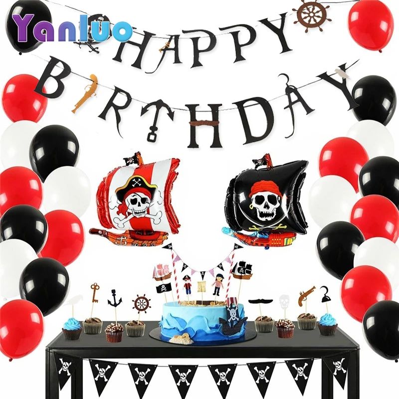 What swashbuckling party ideas have you celebrated a pirate birthday with? Buy black pirate ship boat mate happy birthday party supply mylar balloon latex set: We have free pirate printables and more! I found a pirate costume kit at the dollar store that it came with an eye patch, plastic sword, a hook, and a telescope. We have a great range of party hats in a multitude of colours, sizes and styles. | 50 paper napkins, pirate skull jolly roger baby shower birthday party supplies. Buy today from our online shop with fast delivery service. A simply unforgetable party shop kids party pirate — the latest home decor ideas pirate party ideas birthday party supplies shindigz youtube coolest pirate birthday party ideas. Let party idea {pros} walk you through every step of your child's pirate birthday party including pirate party invitations, decor, food ideas, pirate fun and games and even pirate costumes for children. Best pirate birthday party supplies from pirates of the caribbean birthday party. Make sure you're not the one walking the plank this party and browse our extensive collection of pirate party themes including party tableware and party decorations. So yer gonna have a pirate birthday party, are ye? Browse our selection of pirate skull tableware if you are planning your next pirate theme party or a pirate birthday party.