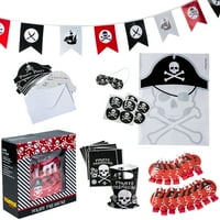 Well pack box pirate birthday party supplies bundle with swords, hats, eye patches, favor boxes and authentic code of conduct great for kids birthday parties and pirate events.